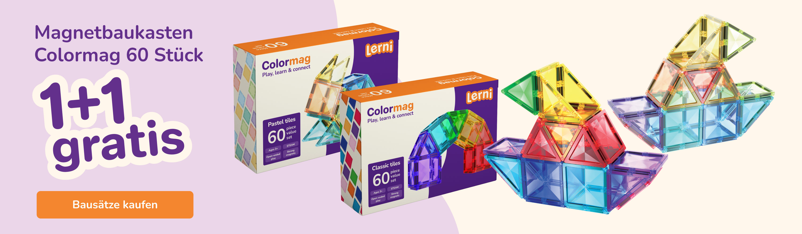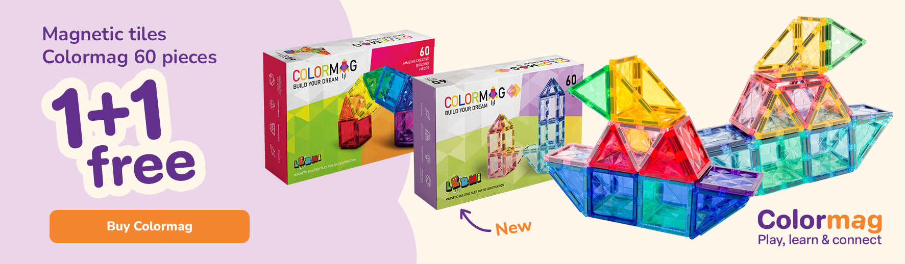 Magnetbaukasten COLORMAG 60 Stück - pastel