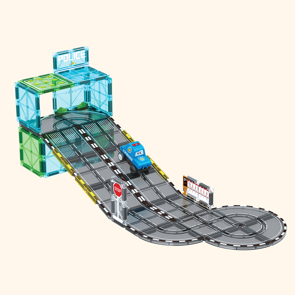 Tauchen Sie ein in eine Welt, in der Ordnung, Abenteuer und Action niemals enden! Die Colormag Polizeistation bringt Spannung und Dynamik in die Stadt – Kinder können Diebe fangen, den Verkehr regeln, auf unerwartete Ereignisse reagieren oder spannende Rettungsaktionen organisieren. Und in Kombination mit anderen Colormag City Sets, wie dem Krankenhaus oder der Feuerwehr, entsteht eine ganze Stadt voller aufregender Szenen und kreativer Geschichten!